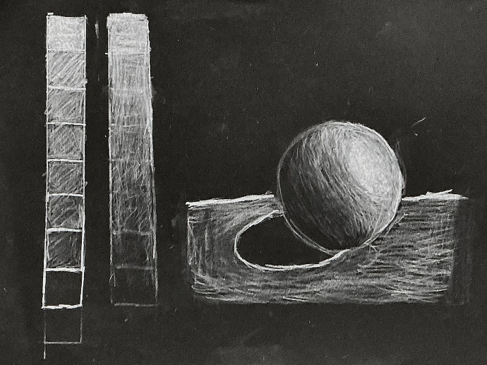 J'avais de la difficulté avec l'ombrage, surtout les dégradés, avec le crayon blanc. Sans pouvoir "smudge", les dégradés réalisés uniquement avec les techniques d'ombrage étaient très difficiles à faire. J'ai dû retourner plusieurs fois sur certaines zones pour ajuster les nuances et m'assurer que les transitions entre clair et sombre paraissaient naturelles.
